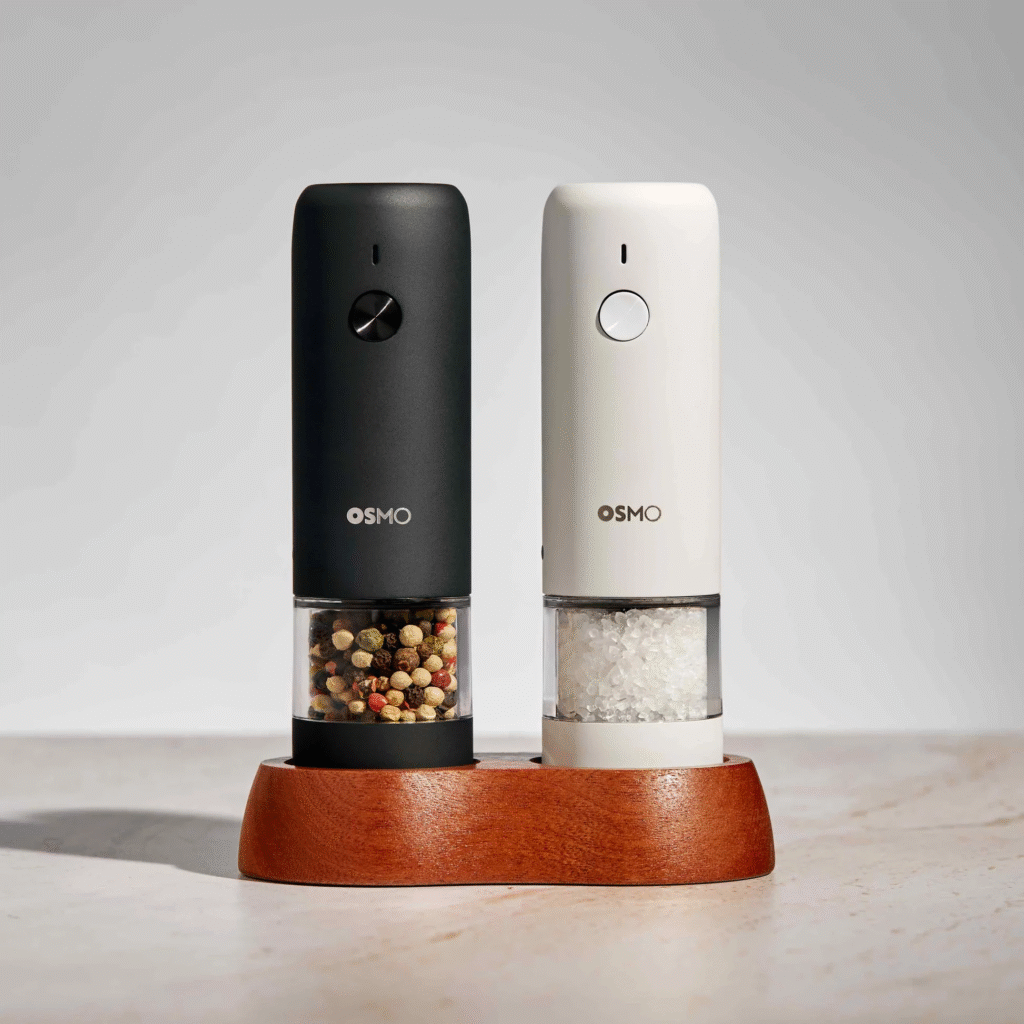 Gone are the days of manual grinding. The new electric salt and pepper mills light up when you tilt them, making seasoning feel luxurious. These are a small but beautiful upgrade that adds instant sophistication to any dining setup.