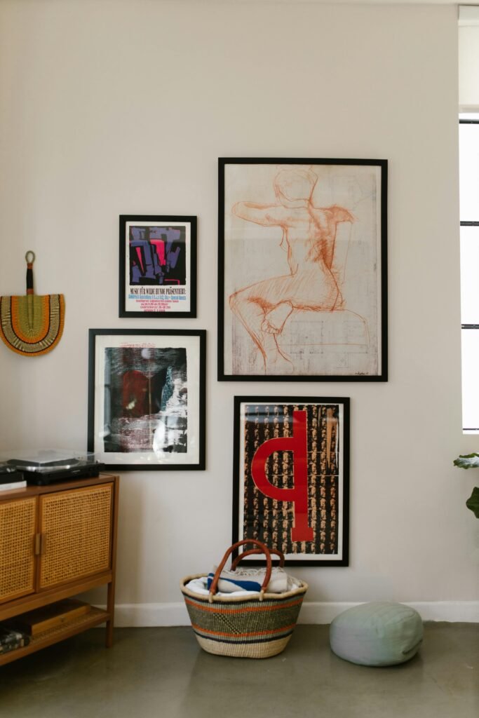 - Gallery walls with family photos or art prints.